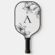 Modern Black and White Floral Monogram Pickleball Paddle
