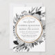 Black and white watercolor florals of hydrangeas, eucalyptus and peonies with faux gold circular border (optional). All text is customizable, as well as the backer pattern. Also available as a wedding invitation.