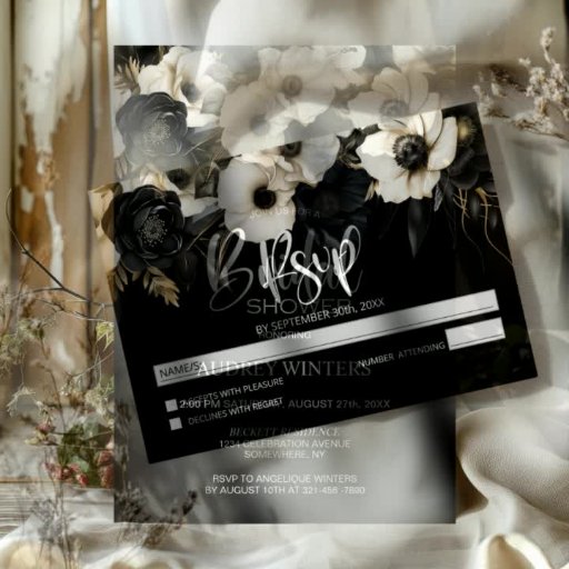 Modern Black and White Floral Wedding Invitation