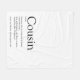 Personalise for your cousin to create a unique gift. This elegant blanket is a perfect way to show them how amazing they are every day. You can even customise the background to his favourite colour. Designed by Thisisnotme©