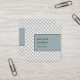 Stylish geometric pattern business card in black and white with blue text boxes.