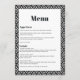 Add a stylish touch to your wedding reception with this modern black and white geometric menu card. Featuring a bold patterned border and elegant typography, this design beautifully complements contemporary wedding themes. Personalize with your menu details to create a sleek and cohesive look for your special day. Perfect for minimalist and modern weddings that focus on clean lines and sophistication.