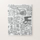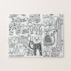 Modern Black and White Hand Drawn Cats Pattern Jigsaw Puzzle