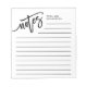 This modern and stylish black and white personalized notepad features trendy black handwritten script that says "notes."