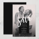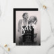 Make your wedding announcement memorable and stylish with this simple chic save the date wedding card featuring a minimalist black and white design, complemented by a striking, modern, white brush script. You can add a lovely photo of the happy couple- colourful or black and white ( your choice) - on the front, and a chic black background on reverse, it's the perfect canvas for customization. Personalize the text and photo to create your own modern elegant save the date card, available in both print and digital download formats.