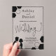 This elegant black-and-white acrylic wedding invitation is perfect for a modern wedding. The simple design features elegant black calligraphy, a chic black frame, and a bride-and-groom illustration on a clear transparent background. The invitation card includes the wedding details on the back instead of paying for a separate enclosure card.
