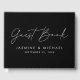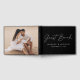 Simple, elegant wedding guest book featuring a handwritten white script mixed with modern lettering against a black background. Personalize the minimalist wedding guest book with your names and wedding date. Add custom text to the spine of the guest book such as your names, the date, etc. The back of the guest book displays your horizontal engagement photo. The chic black and white wedding guest book is perfect for modern weddings.