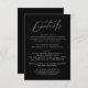 Simple and elegant wedding details card featuring a handwritten white script mixed with modern lettering against a black background. Personalize the minimalist wedding details card with your wedding details such as reception information, hotel accommodations, wedding website, etc. The black and white wedding details card is perfect for modern weddings.