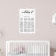 Modern and chic black and white wedding seating chart poster features a stylish black typographic design with bold calligraphy script accents and elegant custom text that can be personalized with a monogram of the bride and groom names, names of guests organized by their assigned table numbers.