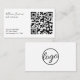 Simple business card featuring a clean and minimalist design with your QR Code on the right with your contact information to the left in a professional layout. The back has your logo. This modern black and white business card may be changed to any colour you wish by clicking the "customize" button and is great for any business, big or small.