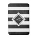 Modern Black and White Striped Monogram Bath Mat