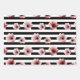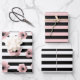 Modern Black and White Stripes and Pink Flowers Wrapping Paper Sheet