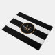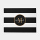Set off your front porch or patio with this Modern Black And White Stripes Gold Monogram Door Mat. This minimal design has wide black horizontal stripes on white background and circle border on the centre. Your monogram initial is in faux gold simple lettering and personalized with name in white trendy hand lettered script. Click personalize template option and follow the prompts.