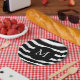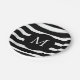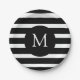 This stylish design features white and black horizontal stripes with a round black centre monogram and the letter in a white block font. You can customize it by resizing and rotating the image and changing the font.