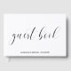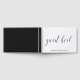 Typography bridal shower guest book featuring the title, "guest book" in black calligraphy, and your name and event title below, over a white background. Your information is on the spine as well. The spine and backside are black and may be changed to any colour that you wish. The simple and minimal layout and lots of open space give this design a modern feel and the calligraphy lettering gives it a chic twist. Display this guest book on your coffee table or book shelf and take it out and read the messages of love whenever you want to remember celebrating with your girls before your special day.
