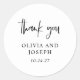 These modern, simple and elegant wedding or bridal shower stickers feature a minimalist black and white text design with stylish handwritten script that says "thank you."