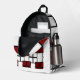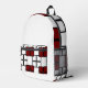 Make a bold impression with this Print Cut & Sew Backpack, featuring a striking geometric square pattern in deep red and white on a sleek black background. Each panel is precisely cut and expertly sewn, ensuring exceptional craftsmanship, durability, and artistic appeal.