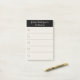 Plan your most important tasks with a modern to do list with your name at the top in a stylish beige font on a bold black band. Below it are five light tan rows divided by thin black lines. Each row has a black checkbox you can tick as you complete items. Customize the checklist with your name or text in the sidebar.