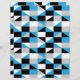 This scrapbook paper features a modern geometric design with triangles and rectangles in sky blue, black, grey, and white.