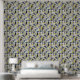 Modern Black Blue Yellow Cross Hatched Pattern Wallpaper. This is another 100% original Snuggle Hamster Design.