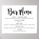 Help your guests find their perfect drink with this bold brush script "Bar Menu" sign. The layout organizes beverages by category including craft beer, domestic beer, red wine, white wine, and more, making it easy to display your full drink selection at the reception bar. The clean black and white design works with any wedding aesthetic. All categories and drink details are fully customizable.