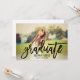 Announce your graduate in style by showcasing their favourite senior photo with this black brush lettered script "Graduate" overlay design. Personalize the black wording on the front with the grad's name and class year. The back of the card invites family and friends to a graduation party to celebrate the occasion. The clean white background colour on the back can be customized.