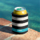Modern Black, Cream & Turquoise Stripe Can Cooler