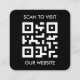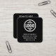 Modern and minimal black and white square business card design features your business logo and custom QR code on the back. Customize the wording with your preferred business information, such as the business name, address, phone number, or website. Black background and white text colour can be changed.