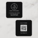 Modern and minimal black and white square business card design features your business logo and custom QR code on the back.