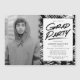 Trendy, modern graduation party magnetic invitations featuring the graduate's vertical senior photo and graduation party details with a background of black and white dashed brushstrokes.