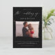 This modern wedding invitation is like elegant grunge. It has a distressed photo frame, black background and white calligraphy text.