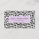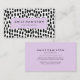 Chic business cards featuring your name and job title framed by a light purple rectangle with a background of painted black and white dots. The modern business card reverses to display additional business details.