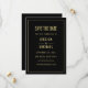 Modern minimalist wedding design. Black background. Gold lettering (gold is not real gold but colour). Modern streamlined fonts. Simple and elegant. For fall wedding, winter wedding, or any kind of modern elegant wedding.