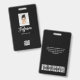 Easily personalize this Custom Employee Name Badge with Photo, Scan Bar Code and business logo. A simple business design in black and white colours fully customizable in front and back sizes, fresh modern calligraphy, sans-serif basic and modern fonts and a professional and clear look. Avaiable with lanyard, metal clip or with retractable. No minimum order.