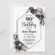 Invite your friends and loved ones with this modern black floral 90th birthday party invitation. The customizable text area in this invitation template allows you to effortlessly include all the necessary details for your special birthday celebration, including the date, time, venue, and RSVP information. A variety of paper types and corner styles are available for your unique invitations, along with the option to download if you prefer a digital format.