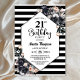 Modern Black Floral Striped 21st Birthday Party Invitation
