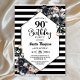 Modern Black Floral Striped 90th Birthday Party Invitation
