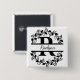 Modern Black Floral Wreath Split Monogram "R" 2 Inch Square Button