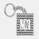 Modern Black Glitter Chevron Zig Zag Stripe Monogram Initial Personalized Key Chain