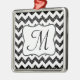 Modern Black Glitter Chevron Zig Zag Stripe Fabric Print Pattern Monogram Initial Christmas Ornament Personalized
