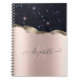 Modern Black Glitter Rose Gold Monogram Notebook
