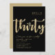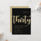 Simple black & gold "Thirty" personalized 30th birthday invitation with classy and modern typography. Customize with name, age, and party details.