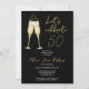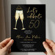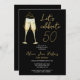 Elegant faux gold trendy handwriting script let's celebrate 50 years black birthday party invitation with champagne flutes.
