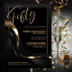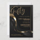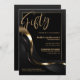 Celebrate your milestone 50th birthday in style with our chic and sophisticated black party invitation. With its customizable text, you can personalize the invitation. This invitation features a fine gold frame that encloses the text, adding a touch of luxury to your special occasion. The gold and grey abstract wavy ribbon design adds a modern and stylish look to the invitation and creates a sense of flow and movement. The overall design is understated yet beautiful, making it perfect for those who prefer a more refined aesthetic.
