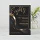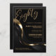 Celebrate your milestone 80th birthday in style with our chic and sophisticated black party invitation. With its customizable text, you can personalize the invitation. This invitation features a fine gold frame that encloses the text, adding a touch of luxury to your special occasion. The gold and grey abstract wavy ribbon design adds a modern and stylish look to the invitation and creates a sense of flow and movement. The overall design is understated yet beautiful, making it perfect for those who prefer a more refined aesthetic.