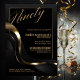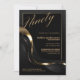 Celebrate your milestone 90th birthday in style with our chic and sophisticated black party invitation. With its customizable text, you can personalize the invitation. This invitation features a fine gold frame that encloses the text, adding a touch of luxury to your special occasion. The gold and grey abstract wavy ribbon design adds a modern and stylish look to the invitation and creates a sense of flow and movement. The overall design is understated yet beautiful, making it perfect for those who prefer a more refined aesthetic.