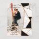 Modern Black Gold Abstract on White Marble Announcement Postcard