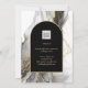 Introducing our luxurious black and gold wedding stationery collection, featuring a stunning smokey black and white with gold accents agate look backdrop and arch frame for the text. This design is perfect for couples who want to add a touch of elegance and sophistication to their wedding stationery.