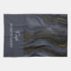 A kitchen towel with a beautiful image of dark abstract agate stone. Colours swirl in waves. Main colours are black, blue-grey with a faux-gold ribbon running through the design. Modern and trendy.