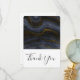 A flat thank you card with a beautiful image of dark abstract agate stone. Colours swirl in waves. Main colours are black, blue-grey with a faux-gold ribbon running through the design. Modern and trendy. Personalized message on the back.
